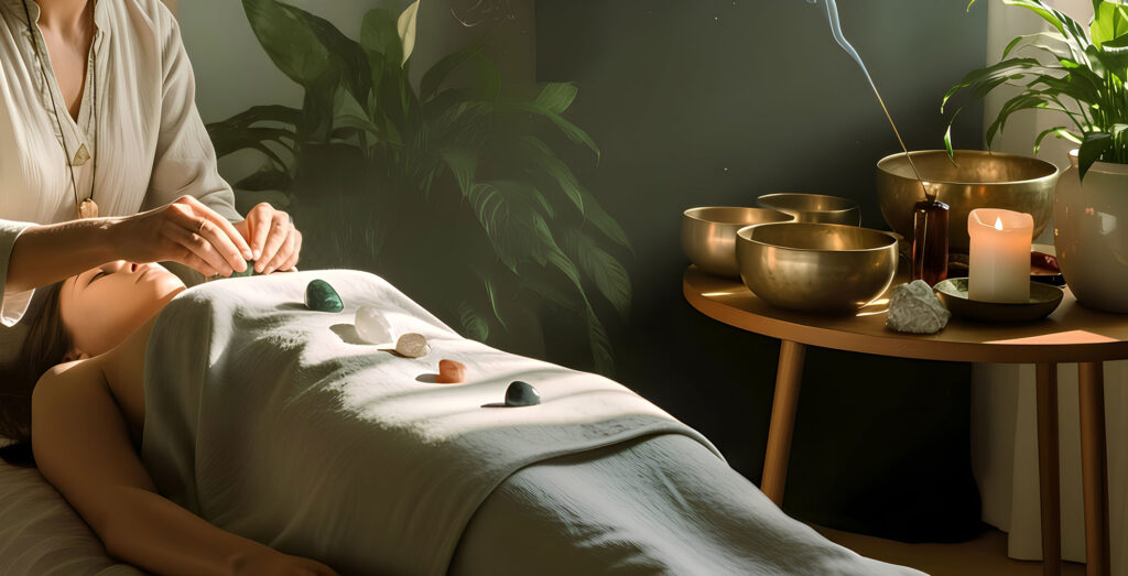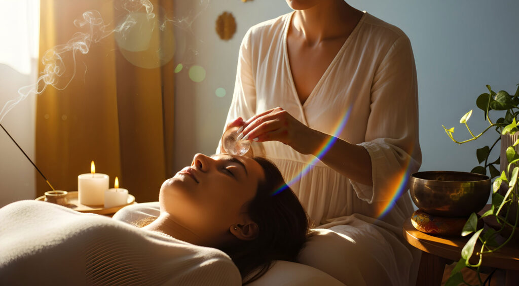 A restorative journey using crystal bowls, tuning forks, drums and voice to reset the nervous system, release tension and clear auric congestion. Clients feel deeply relaxed, sleep better and experience ongoing shifts in dreams and emotional clarity.